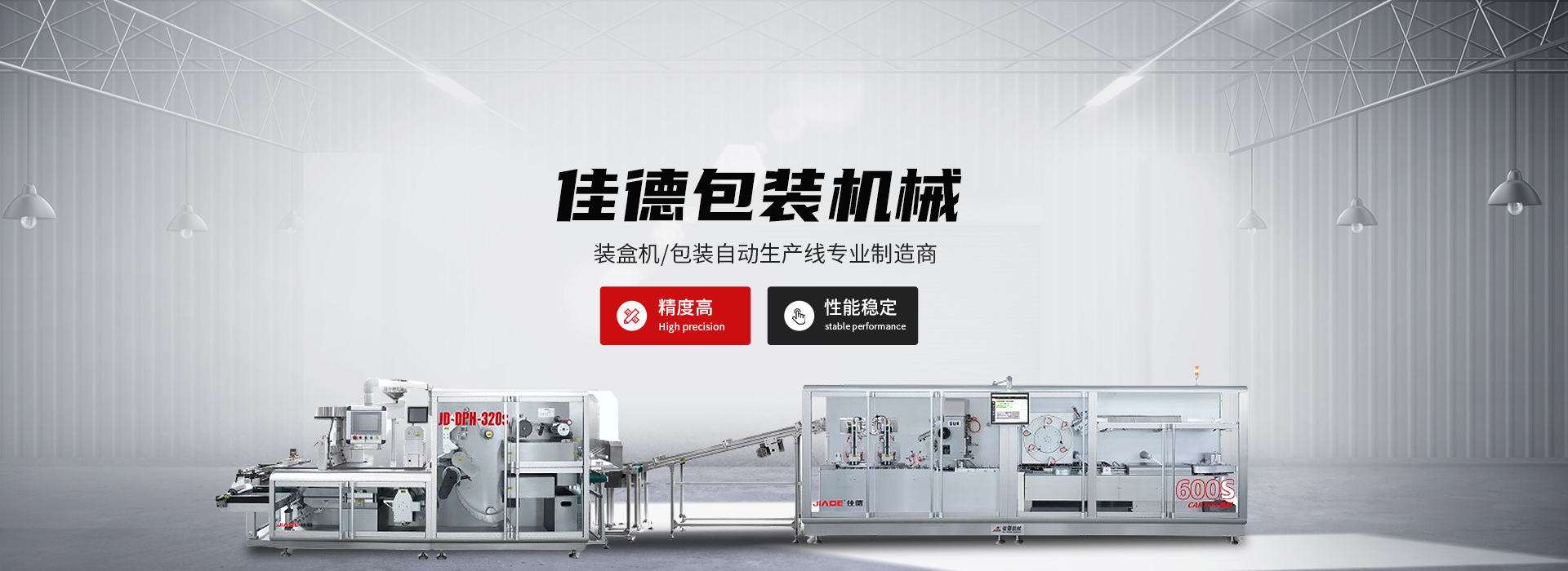 浙江佳德包裝機械有限公司創建于2005年,主要經營貼膏裝盒機,咖啡袋裝盒機,軟雙鋁裝盒,裝盒捆扎包裝線,裝盒三維包裝線等產品。公司地處浙江省溫州平陽萬全工業區,是專業從事包裝機械、制藥機械、食品機械集科研、開發、生產、銷售、服務為一體的科技型企業。本公司是制藥裝備行業協會會員,中國橡膠協會理事會員,先通過了CE認證、ISO9001質量體系認證,并獲得了多項。  我公司主要生產裝盒機、高速裝盒機、以及裝盒機配套聯線設備(鋁塑泡罩裝盒聯線、枕包裝盒聯線、灌裝裝盒聯線、顆粒袋裝盒聯線、西林瓶/安瓿...